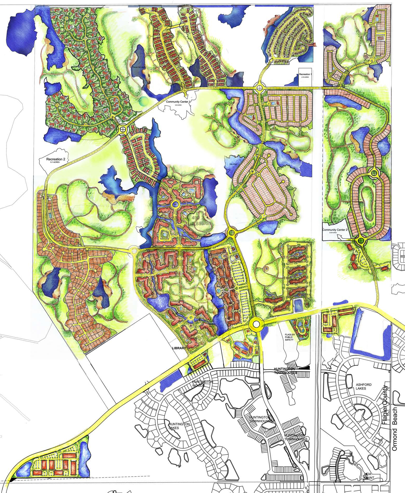 The developed portion of Hunter’s Ridge is in Volusia County and the remaining acreage is in Flagler County, Florida.